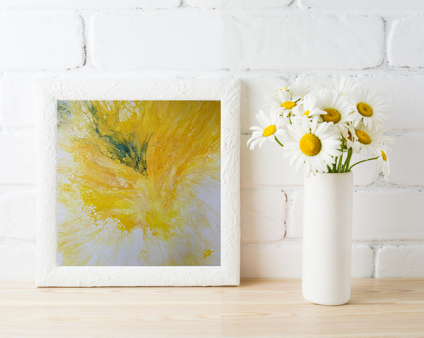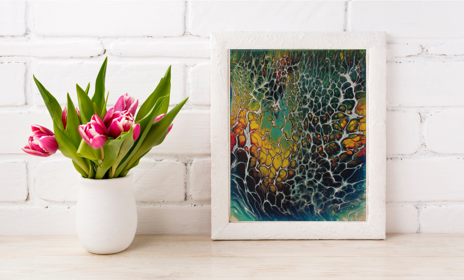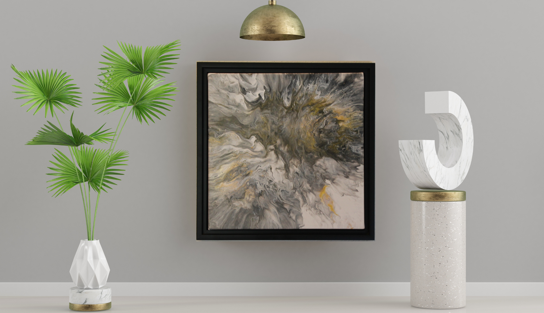 12x16 White Floating 1 1/4“ Frame, Metallic and Satin Acrylics on Canvas